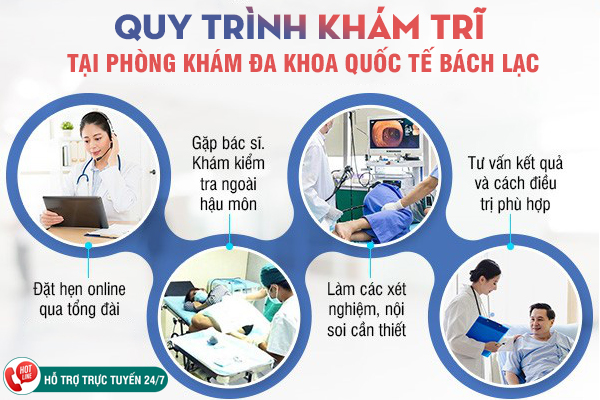 Quy trình khám bệnh trĩ tại Phòng Khám Đa Khoa Quốc Tế Bách Lạc sẽ được bác sĩ chuyên khoa thực hiện với các bước như sau: