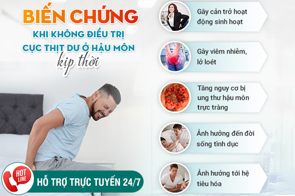 Tình trạng nổi cục thịt dư ở gần hậu môn có khả năng là dấu hiệu cảnh báo của nhiều bệnh lý khác nhau vùng hậu môn trực tràng. Những bệnh này sẽ không thể tự khỏi nếu người bệnh không chủ động thăm khám và điều trị, thậm chí khi để kéo dài còn có nguy cơ dẫn đến nhiều vấn đề ảnh hưởng hay biến chứng khó lường sau đây: